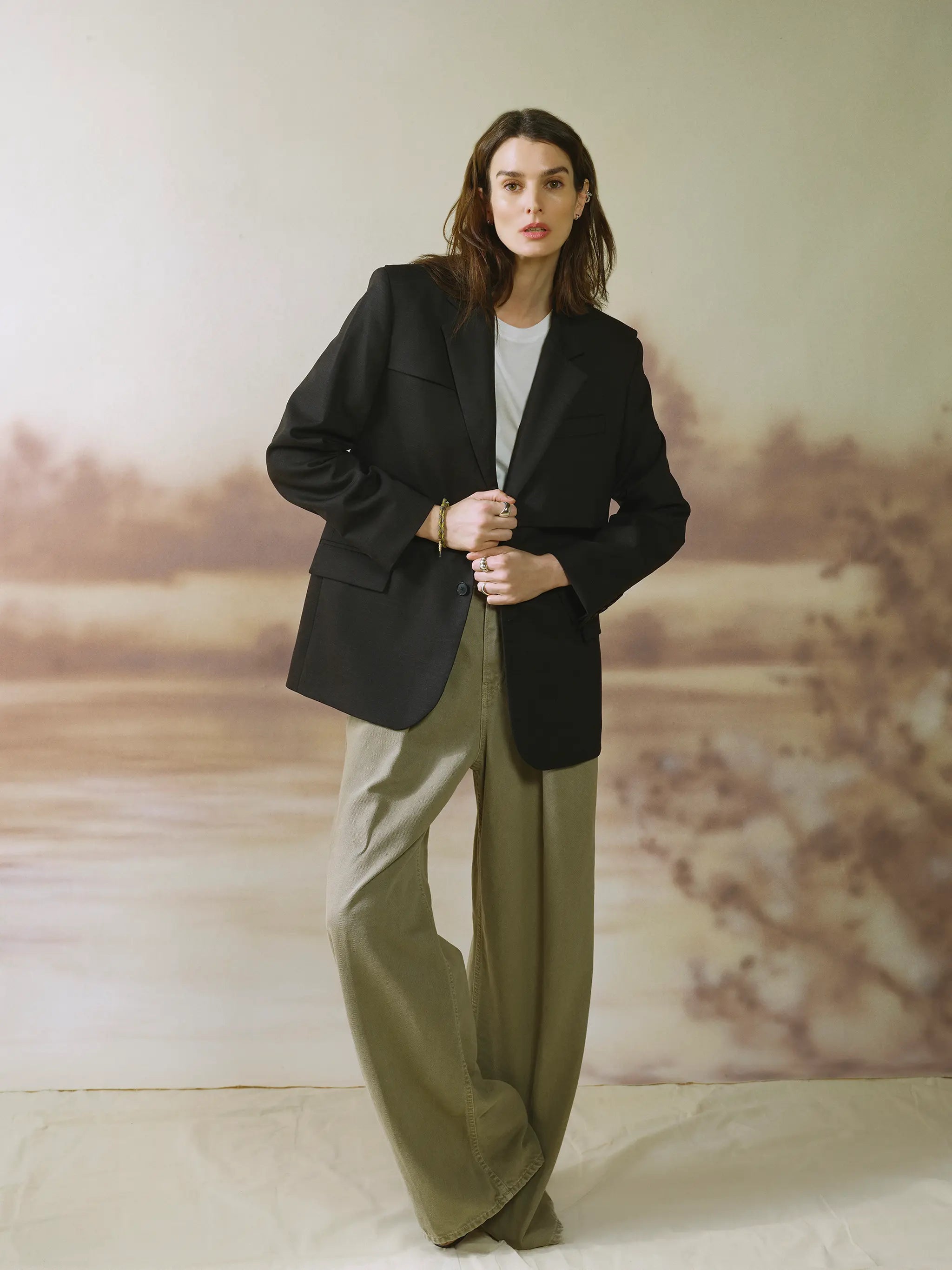 Designed for an intentionally oversized fit. Take your usual size for a relaxed, modern proportion, or size down for a closer, more traditional tailored fit.